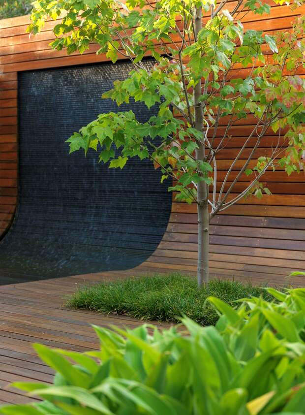 Решение из Индии — пергола в растениями в нескольких метрах от дома, а между ней и постройкой — вода.