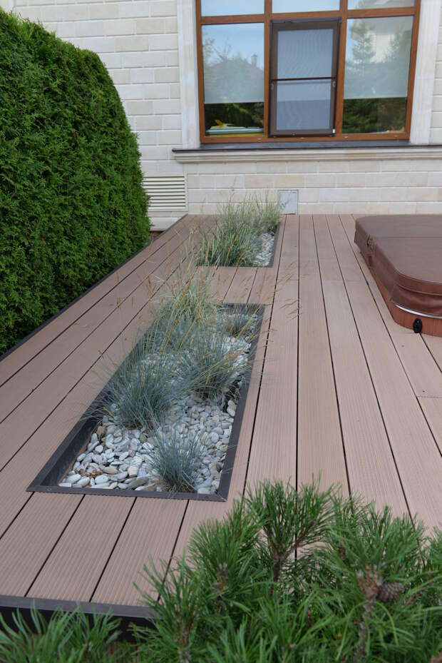 Обычно делают снизу доверху планки, а здесь — добавили ажур