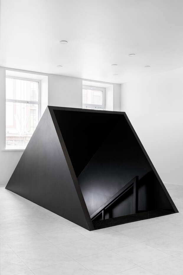 Между последней ступенькой и приземлением образовалась пустота — архитекторы придумали цельнометаллический объем для акцента