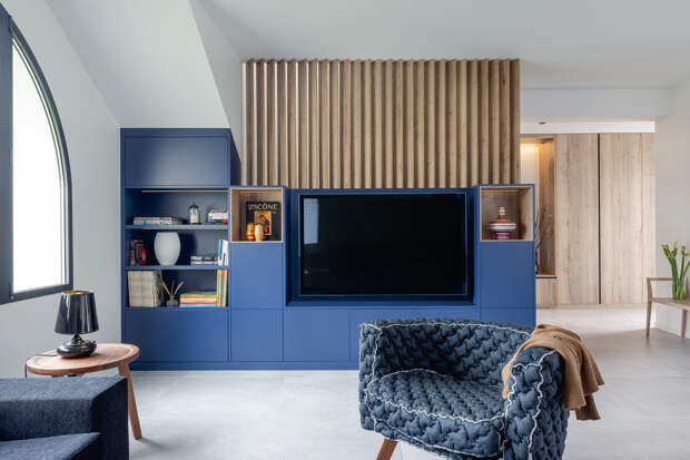 Вход в помещение выходит практически в середину комнаты. И конструктив решили максимально подчеркнуть